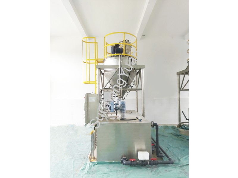根據(jù)高猛酸鉀的特性,設(shè)計(jì)采用真空吸料進(jìn)料、防堵塞裝置、熱加防潮、預(yù)潤濕裝置,提高了設(shè)備運(yùn)行的穩(wěn)定性。